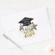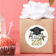 Cool, modern look "Class of 2024” graduation popular round shape envelope seals and stickers in stylish gold and silver numbers graphic design on a clean white contrasting background and a black graduation cap graphic design with a gold tassel. A sparkling gold star also adds to this fun design. Easily add the school name, graduate's name or any custom text to personalise onto the graduation hat. Great for the whole senior graduating class!