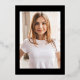 These modern and stylish grad party invitations feature three photos of the graduate, plus their 2024 graduation year in bold, gold foil text on a dark black background. Plenty of gold foil accents add an elegant touch to the front of the card.