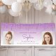 Welcome graduation party guests or simply announce her achievement with this chic, glamourous photo banner, featuring a sparkly purple faux glitter drip border and purple ombre background. Easily replace the two sample images with photos of the graduate. Personalise it with her name in purple handwriting script, with the class year and school in sans serif font. Perfect for high school or college graduation.