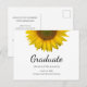 Rustic Class of 2024 floral graduation party invitation postcard, with a yellow sunflower and script typography design. With customise lettering, you can add your own information. A lovely addition for planning your Graduate's milestone.