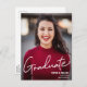 Personalise this modern graduation announcement postcard with your girl graduate's photo, name, class year and school name. Include a special greeting on the back, your return address and other details. Modern script font typography, elegant and chic. Share your excitement to family and friends on your grad's accomplishment.