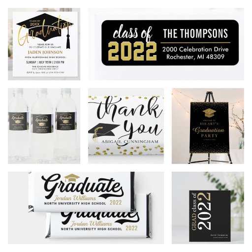 This classy graduation design on this water bottle label offers 2 photo frames with gold and black text reads: Class of 2025.
