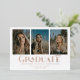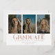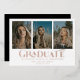GRADUATE Class of 2025.  Modern Minimalist Foil Typography, 3 photo graduation announcement. Features, 3 vertical portrait photos on front and solid black colour backing.
