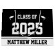 This black and white gift bag says Class of 2025 in large white text. (You can change the year if you need to.) At the bottom, there's black text you can change to show the correct name for the graduate. White graduate's caps are on either side of the phrase "Class Of".