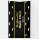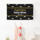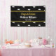 This black white and gold graduation banner has a pattern of white graduate's caps in the background. In the centre, there's display text you can personalise with a custom message (shown: Congratulations), the graduate's name. and the year the student is graduating. The faux gold script is an artistic rendering (it's not foil).
