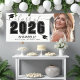 This classic yet modern graduation party banner is the perfect way to celebrate the Class of 2025. The design is arranged with the graduation details on the left side, featuring "Class of 2025" in bold black and white, accented with elegant grey script. Two graduation cap icons add a festive touch, while space below allows for the graduate’s name and school, creating a personalised centerpiece for the celebration.
