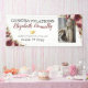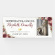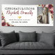 Modern graduation party banner featuring a clean white background that can be changed to any colour, a photo of the graduate, gold sparkly glitter, burgundy and pink watercolor flowers, and a congratulations template that is easy to personalise.