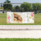Girly graduation party door banner featuring a clean white background that can be changed to any colour, a photo of the graduate, gold sparkly glitter, pretty pink watercolor flowers, and a congratulations template that is easy to personalise.