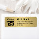 Graduation return address label features sporty class year text and custom wording that can be personalised with a last name and return address. The faux gold foil printed background colour and black text colours can be customised to coordinate with any school colour.