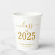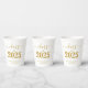 Stylish elegant custom graduation party supply! Celebrate the graduate's accomplishment in style with this trendy graduation party paper cups. Design features "Class of 2025" in gold font on a clean white background. Personalise this product by adding the name and school name. Easy to customise. Matching graduation party supplies available. Congratulations!