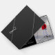 On the back, a decorative painted pattern of scrolling white curves meet and diverge on a black background.