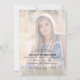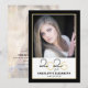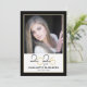 This modern graduation party invitation features a square photo on the front and a full vertical photo on the back. This black and gold design is accnted with the graduating year of 2025 appearing in an elegant script.