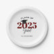 This personalised paper plate is perfect for your graduation party. The maroon and black text reads: Class of 2025 Grad. A black mortarboard sits on top of the zero in the year.