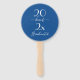 Stay cool during graduation with modern customizable fans featuring elegant white script words on a blue background. Customize the year for a chic, cursive typography design which reads: class of [YEAR] Graduate. The back side features a decorative white scale pattern on a dark blue background.