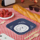 Throw an elegant graduation party featuring a chic navy blue on white typography emblem which reads: CLASS OF [YEAR] GRADUATE with the words curving around the year in the middle with curved botanical leaves along each side of the circular design. A wide navy border with white leaves in each corner surrounds the central design. Customise the year in the sidebar.