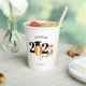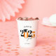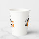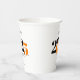 This paper cup features a modern orange and black class of 2025 design. It offers custom text for the name of the graduate or the school name.  The design is accented with a black graduation hat.