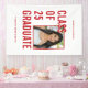 Your graduate's photo, surrounded by large bold lettering "CLASS OF 25 GRADUATE", finished with your name and high school. Add your own photo and other details by following the "Personalise" link. The red and white school colours can also be changed, to match your graduate's school colours, by using the edit menu. If you would like assistance, please feel free to reach out to me via email at susanmingaydesigns@gmail.com