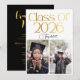 Class of 2026 2 Photo Twins Black Gold Typography Invitation