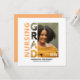Stylish personalized graduation announcement for NURSING Graduate, with customizable photo, name, year, university and message on the back. Designed with GRAD photo mask detail and in nurse grad color of apricot. Matching stationery available.