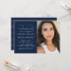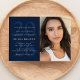 For your high school or college graduate, this one-photo card can be used as either a party invitation, an announcement or both! Featuring a big year behind the party details, there's room for parents to announce their grad, a full name and all the party details. The back has a white stripe pattern. The color is navy blue but other colors are available in the collection by Lea Delaveris Design