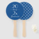 Stay cool during graduation with modern customizable fans featuring elegant white script words on a blue background. Customize the year for a chic, cursive typography design which reads: class of [YEAR] Graduate. The back side features a decorative white scale pattern on a dark blue background.