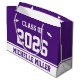 Class of 2026 Graduate Name Royal Purple and White Large Gift Bag