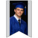 A festive blue and white “2026 Graduate” banner arranged in a curved layout, featuring bold letter panels and optional photo sections for a personalized touch. Perfect for celebrating graduation milestones with a fully customizable design that fits any event theme.
