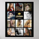 Custom graduation memory poster featuring a black background that can be changed to any color, 11 photos of your choice, a gold graduate cap, and a text template that is easy to personalize.