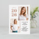 These modern and stylish grad party invitations feature three photos of the graduate, plus their 2026 graduation year in bold, rose gold foil text on a simple white background. Plenty of gold foil accents add an elegant touch to the front of the card.