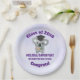 Paper plates which say class of 20xx, customise with the year of graduation, a personal name and school. Designed with a light purple background. Illustrated with a cute koala bear with a black graduation cap eating some eucalyptus leaves.
