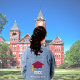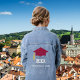 Burgundy graduation cap and graduation year number Denim Jacket. Text can be personalised.