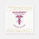 Paper napkins with faux gold confetti dots along the top. A red caduceus symbol with the letters R N on either side. Personalised name and text which says Class of 20xx Congratulations.