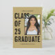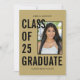 Your graduate's photo, surrounded by large bold lettering "CLASS OF 25 GRADUATE", finished with your name and high school. On the back, you can share a story or the graduate's bio of interests and activities, or delete the text and leave blank. Add your own photo and other details by following the "Personalise" link. The black and gold colours can also be changed, to match your graduate's school colours, by using the edit menu. If you would like assistance, please feel free to reach out to me via email at susanmingaydesigns@gmail.com