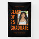 Your graduate's photo, surrounded by large bold lettering "CLASS OF 25 GRADUATE", finished with your name and high school. Add your own photo and other details by following the "Personalise" link. The black and gold colours can also be changed, to match your graduate's school colours, by using the edit menu. If you would like assistance, please feel free to reach out to me via email at susanmingaydesigns@gmail.com