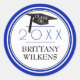 Class of | Grad Cap & Year | Royal Blue & White Classic Round Sticker