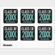 Modern and Bold graduation Stickers in white and teal colour over a black background.