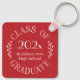 Classic white on red typography emblem reads: CLASS OF [YEAR] GRADUATE with the words curving around the year and your graduate's name in the middle with curved botanical leaves along each side of the circular design. The back has the same design but with your grad's school name. Customise the year, name, and high school/college/university name in the sidebar. Makes a cool personalised graduation gift.