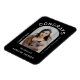 Elegant solid black and white congrats typography script graduation announcement magnet with a trendy arch shape photo and modern look.