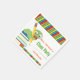 This class party paper napkin features a cute bookworm sitting on top of a stack of books. The napkin is accented with multicolored stripes on the top and bottom. Customisable text allows you to add: teacher's name and grade.
