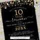 Modern and elegant class reunion invitation for any year reunion (shown for a 10 Year) featuring gold stars and lights, elegant handwritten script typography and a custom colour background (shown in black) you can change to your school colour or party theme colour. All text is editable to make your own. This invitation is also available as a digital file download for sharing digitally or online. ASSISTANCE: For help with design modification or personalisation, colour change, resizing, transferring the design to another product or you would like coordinating items, contact the designer BEFORE ORDERING via the Zazzle Chat MESSAGE tab below or email makeitaboutyoustore@gmail.com.