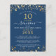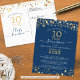 Modern and elegant class reunion postcard invitation for any year reunion (shown for a 10 Year) featuring gold stars and lights, elegant handwritten script typography and a custom colour background (shown in blue) that you can change to your school colour or party theme colour. All text is editable to make your own. ASSISTANCE: For help with design modification or personalisation, colour change or transferring the design to another product or you would like coordinating items, contact the designer BEFORE ORDERING via the Zazzle Chat MESSAGE tab below or email makeitaboutyoustore@gmail.com.