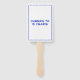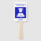 This fun hand fan is designed for a class reunion featuring blue block graduate artwork with rolled scroll. The text and background are in blue and white. Fill in the personal information template fields, remove any text or click customise to select a typeface colour, size, and style your prefer.