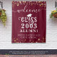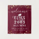 Welcome alumni to their high school or college class reunion (editable for any year reunion) with this custom colour tapestry to be used as a sign or photo op backdrop featuring gold stars, string lights, calligraphy script and decorative typography and personalised with your school name and graduating class year. The colours (shown in maroon/burgundy, gold and white) can be changed to your school colours or coordinating party theme colours in EDIT. TAPESTRY OPTIONS: The sample is shown in the 50x60" size--other sizes are available on the ordering page. ASSISTANCE: For help with design modification or personalisation, colour change, resizing or transferring the design to another product, contact the designer BEFORE ORDERING via the Zazzle Chat MESSAGE tab below or email makeitaboutyoustore@gmail.com.