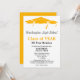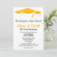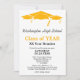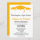 This vertical format minimalist class reunion invitation design features black and orange text on an all white background with three graduation caps as the top border. The back colour matches the graduation caps on the front. Personalise your information, remove information or edit using the design tool to select a font colour, size, and style your prefer.