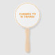 This fun hand fan is designed for a class reunion featuring a black artwork graduate with rolled scroll. The text and background are in orange and white. Fill in the personal information template fields, remove any text or click customise to select a typeface colour, size, and style your prefer.
