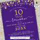 Modern and elegant class reunion invitation for any year reunion (shown for a 10 Year) featuring gold stars and lights, elegant handwritten script typography and a custom colour background (shown in purple) you can change to your school colour or party theme colour. All text is editable to make your own. This invitation is also available as a digital file download for sharing digitally or online. ASSISTANCE: For help with design modification or personalisation, colour change, resizing, transferring the design to another product or you would like coordinating items, contact the designer BEFORE ORDERING via the Zazzle Chat MESSAGE tab below or email makeitaboutyoustore@gmail.com.