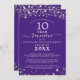 Modern and elegant class reunion invitation for any year reunion (shown for a 10 Year) featuring silver stars and lights, elegant handwritten script typography and a custom colour background (shown in purple) you can change to your school colour or party theme colour. All text is editable to make your own. This invitation is also available as a digital file download for sharing digitally or online. ASSISTANCE: For help with design modification or personalisation, colour change, resizing, transferring the design to another product or you would like coordinating items, contact the designer BEFORE ORDERING via the Zazzle Chat MESSAGE tab below or email makeitaboutyoustore@gmail.com.