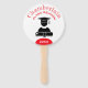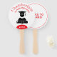 This fun hand fan is designed for a class reunion featuring a black artwork graduate with rolled scroll. The text and background are in red and white. Fill in the personal information template fields, remove any text or click customise to select a typeface colour, size, and style your prefer.