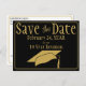 Send off this black and gold "Save The Date" template postcard announcement with QR Code on the back for your class reunion. Personalise the text in the template fields for the front and back, add the appropriate link to a website for your QR Code or edit using the design tool to select a font style, size, and colour you prefer.