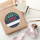 Customise this Class Reunion name tag sticker with your graduation year, reunion number, and school name, then write in each attendee's name at the event in the empty white box below the school name. Blue shiny background with colourful text. Edit all text.